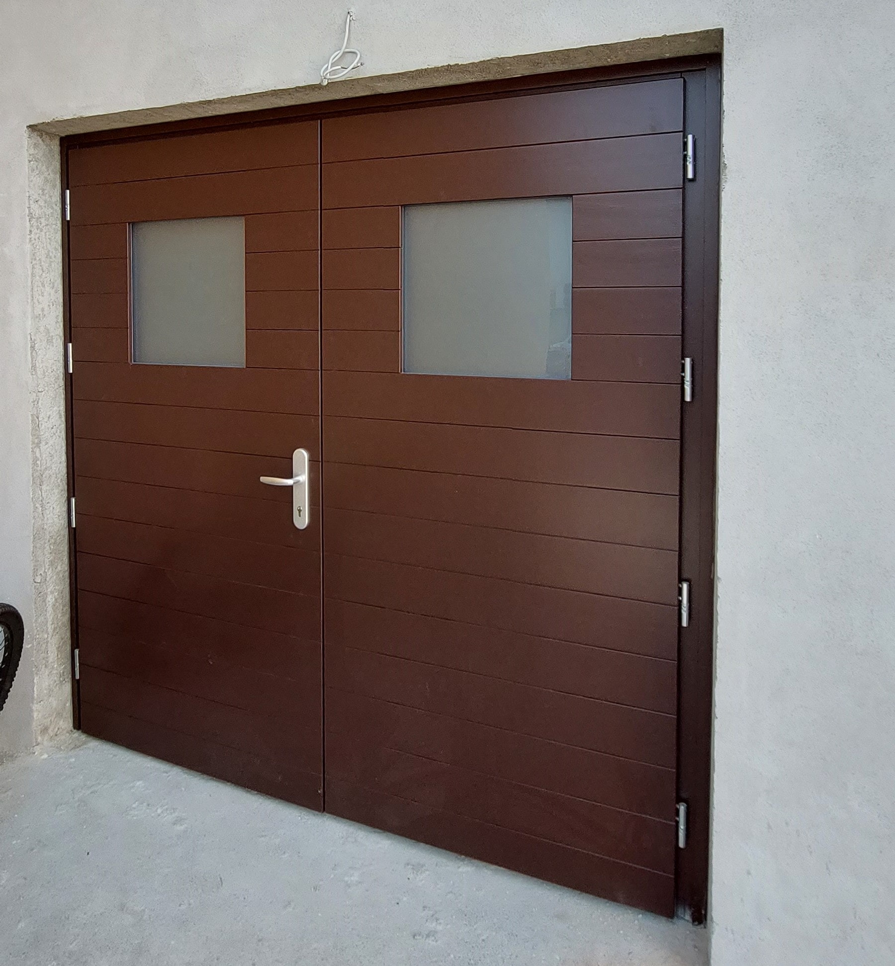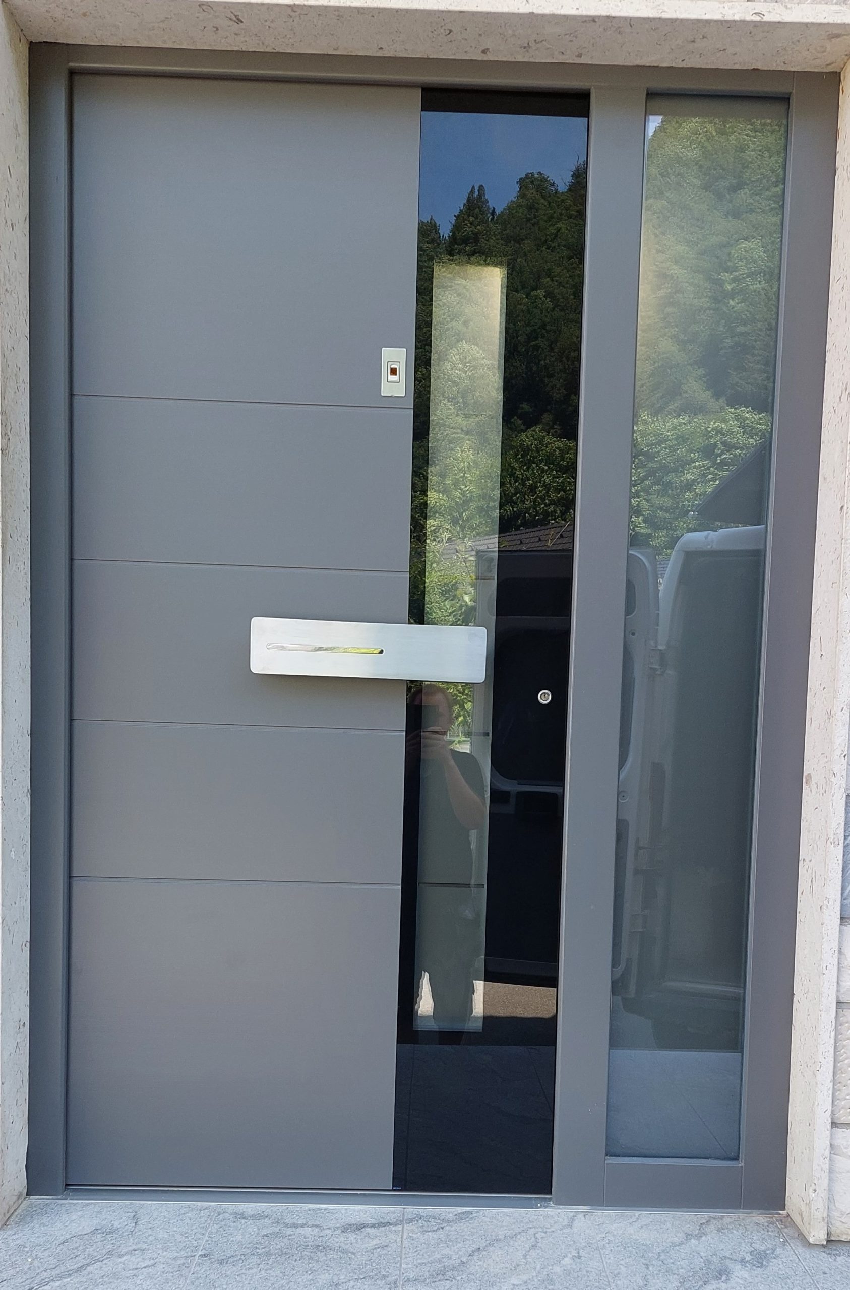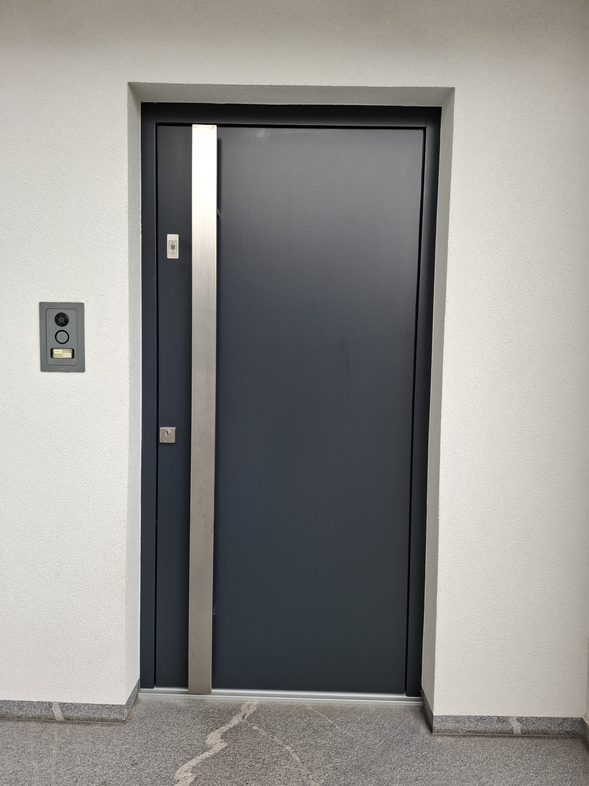 Vhodna vrata so sestavljena iz roling panelov VARIOTEC, ki dosegajo odlične izolacijske in stabilnostne rezultate. Vgrajene imajo parne zapore in stabilizatorje proti krivljenju vratnega krila. Sredina sendvič plošče je sestavljena iz izolacijskega materiala.